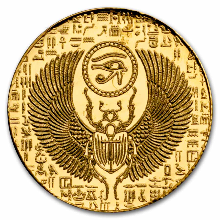 • Reverse: Features a detailed scarab holding the Eye of Ra. Around the edges are various hieroglyphics including the hidden MPM crown mint mark.