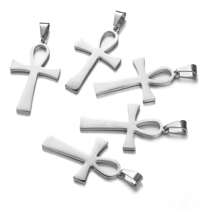 10Pcs/Lot Egypt Symbol Stainless Steel Charm Ankh Pendant Charms Fit Necklace DIY Jewelry Making