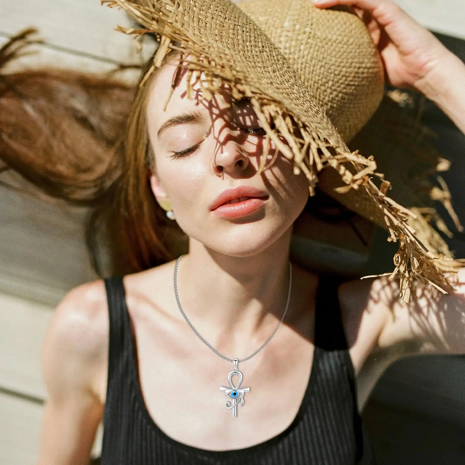 Eye of Horus Necklace: This egyptian eye of horus and ankh cross necklace, the eye of horus and the ankh come together perfectly. Where ankh is an egyptian hieroglyph, known as the symbol of life, and the eye of horus, in ancient egypt, represented protection, health and restoration. Ancient egyptians believed in wearing this amulet to prevent disasters and diseases and to pray for health, love and wealth.