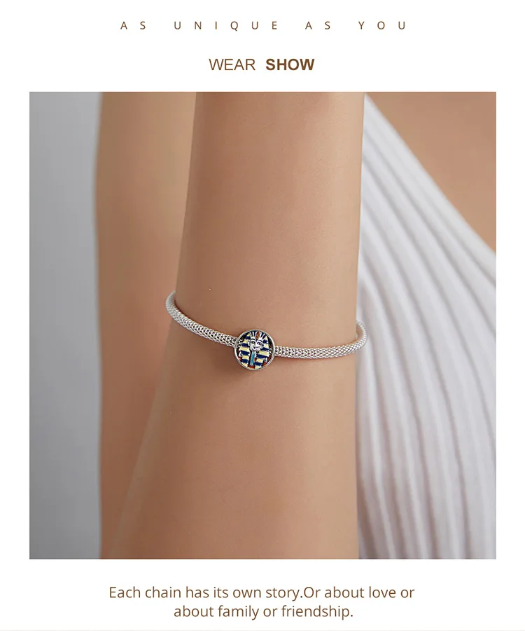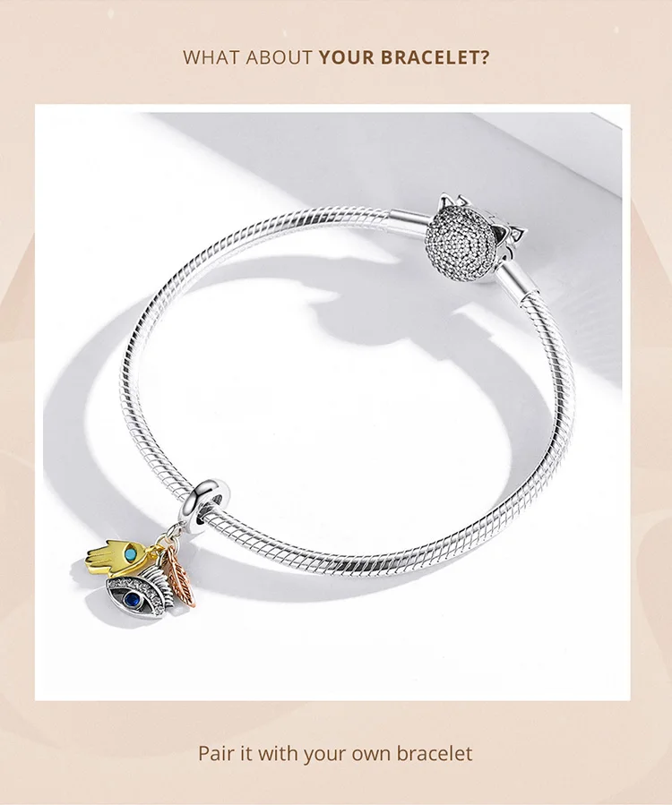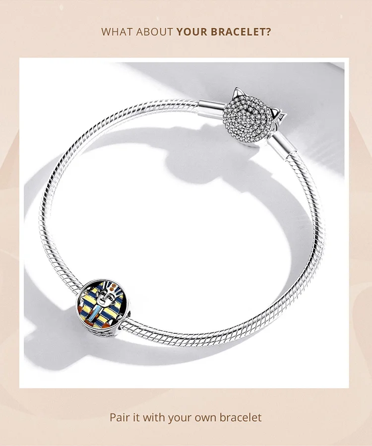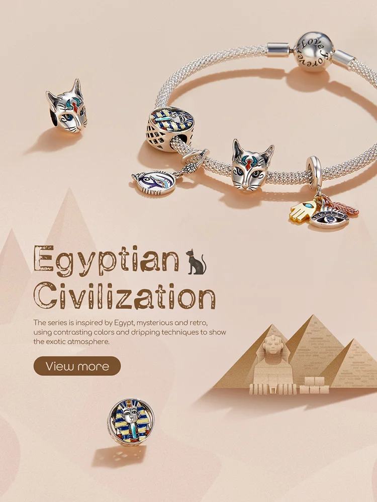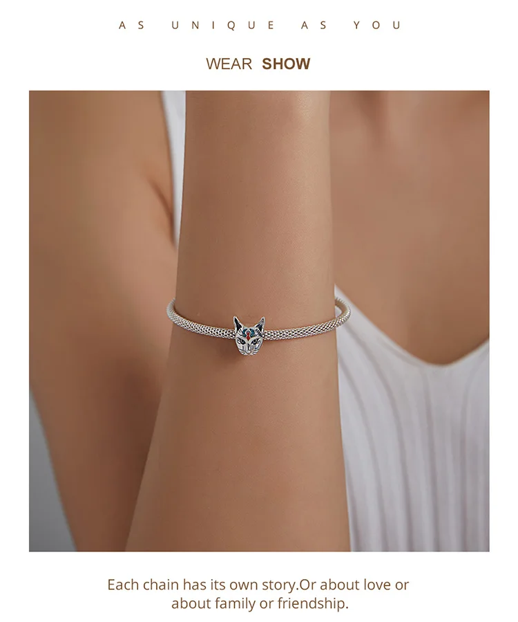 New 925 Sterling Silver Charm Egypt Bastet & Twin Eyes Bead Pendant Fit Original Bracelet Necklace for Women Jewelry