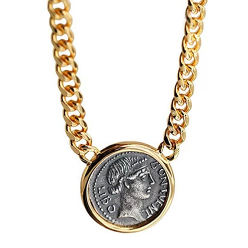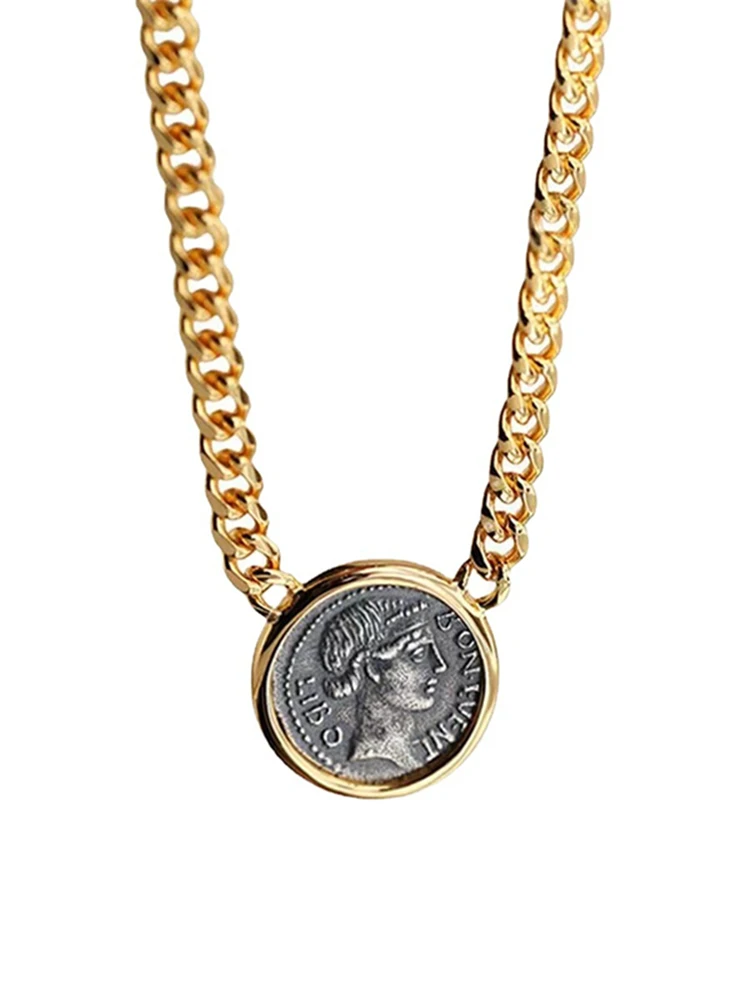New Ancient Roman Necklace. Fashionable Golden Simplicity. Embossed Pattern Charm Ladies Necklace. Jewelry Girl Party Gif